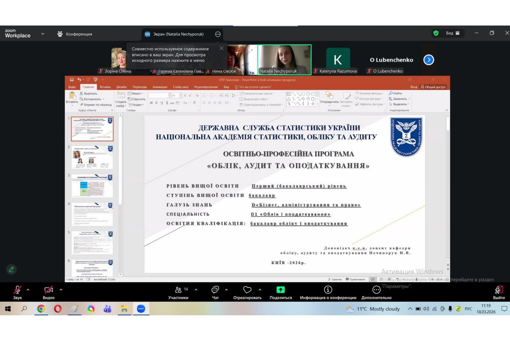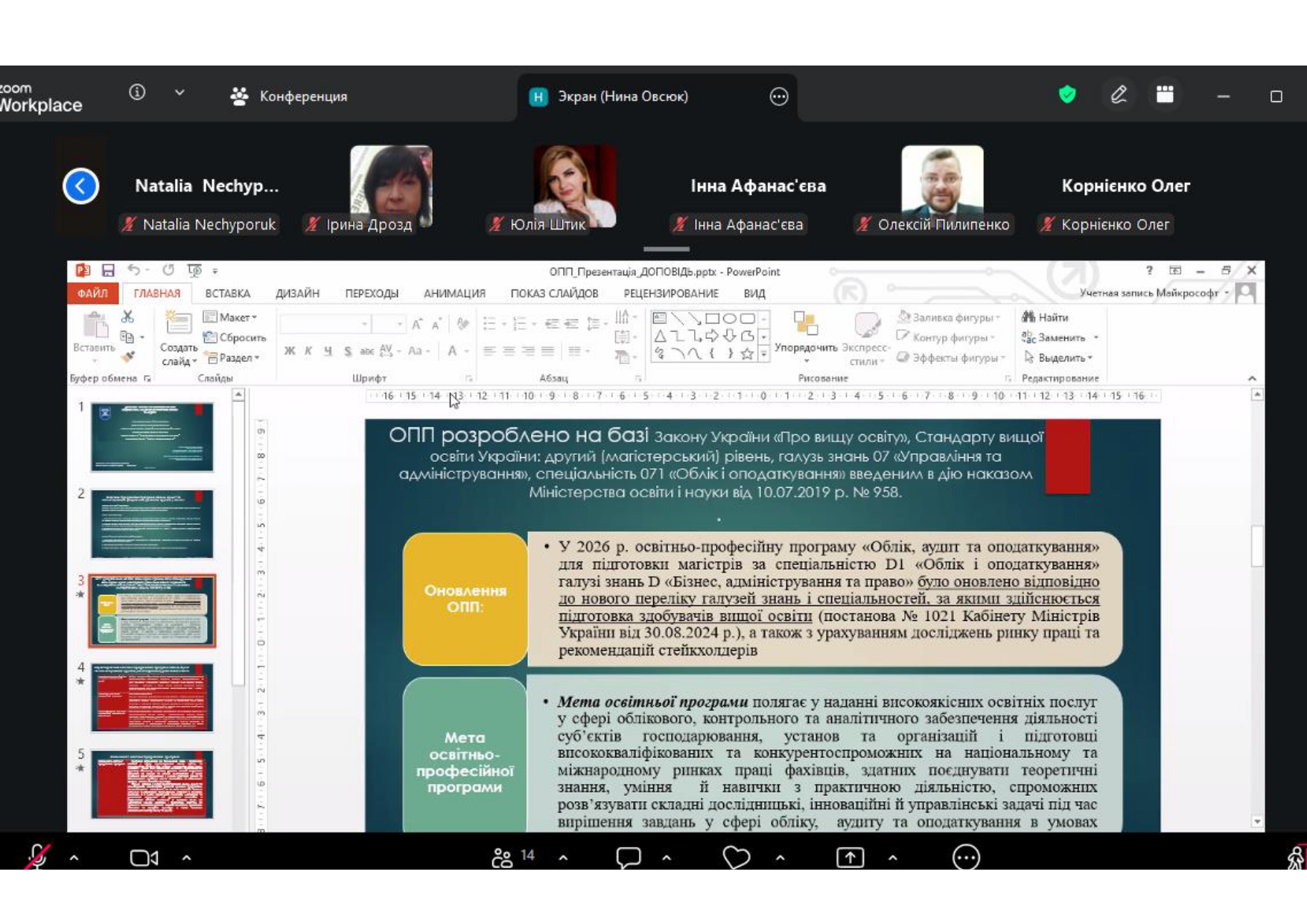 18 березня 2026 року відбулася робоча зустріч гарантів освітньо-професійних програм «Обліку, аудиту та оподаткування», членів робочих груп та викладачів кафедри, які забезпечують їх реалізацію на першому (бакалаврському) та на другому (магістерському) рівнях вищої освіти за спеціальністю D1 «Обліку і оподаткування».