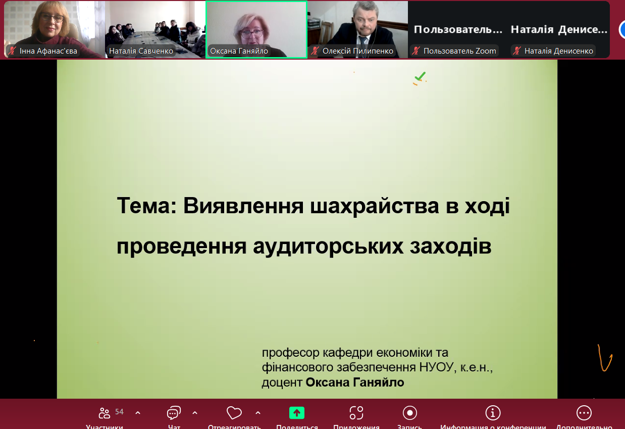 27 жовтня 2025 року викладачі кафедри обліку, аудиту та оподаткування НАСОА та здобувачі спеціальності «Облік і оподаткування» приєдналися до гостьової лекції к.е.н., доценткою, професоркою кафедри економіки і фінансового забезпечення Національного університету оборони України Оксаною ГАНЯЙЛО на тему «Виявлення шахрайства в ході проведення аудиторських заходів».